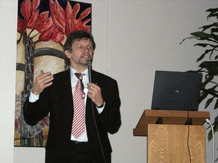 Mit viel Hintergrundinformation, aber auch praktischen Tipps, stellte er auch aus eigener Betroffenheit das Krankheitsbild anschaulich dar und zeigte die Spirale in den Burnout auf. Mit seinen 44 Jahren hatte der Theologe und zweifache Familienvater bereits zwei Burnouts hinter sich. Wichtig für ihn: Man muss auch NEIN sagen können. Die anschließende Diskussion mit dem Referenten und in der Zuhörerschaft dauerte bis spät in die Nacht. Frühjahr 2007Berufliches und ehrenamtliches Engagement für regenerative Energien am Beispiel der Photovoltaik